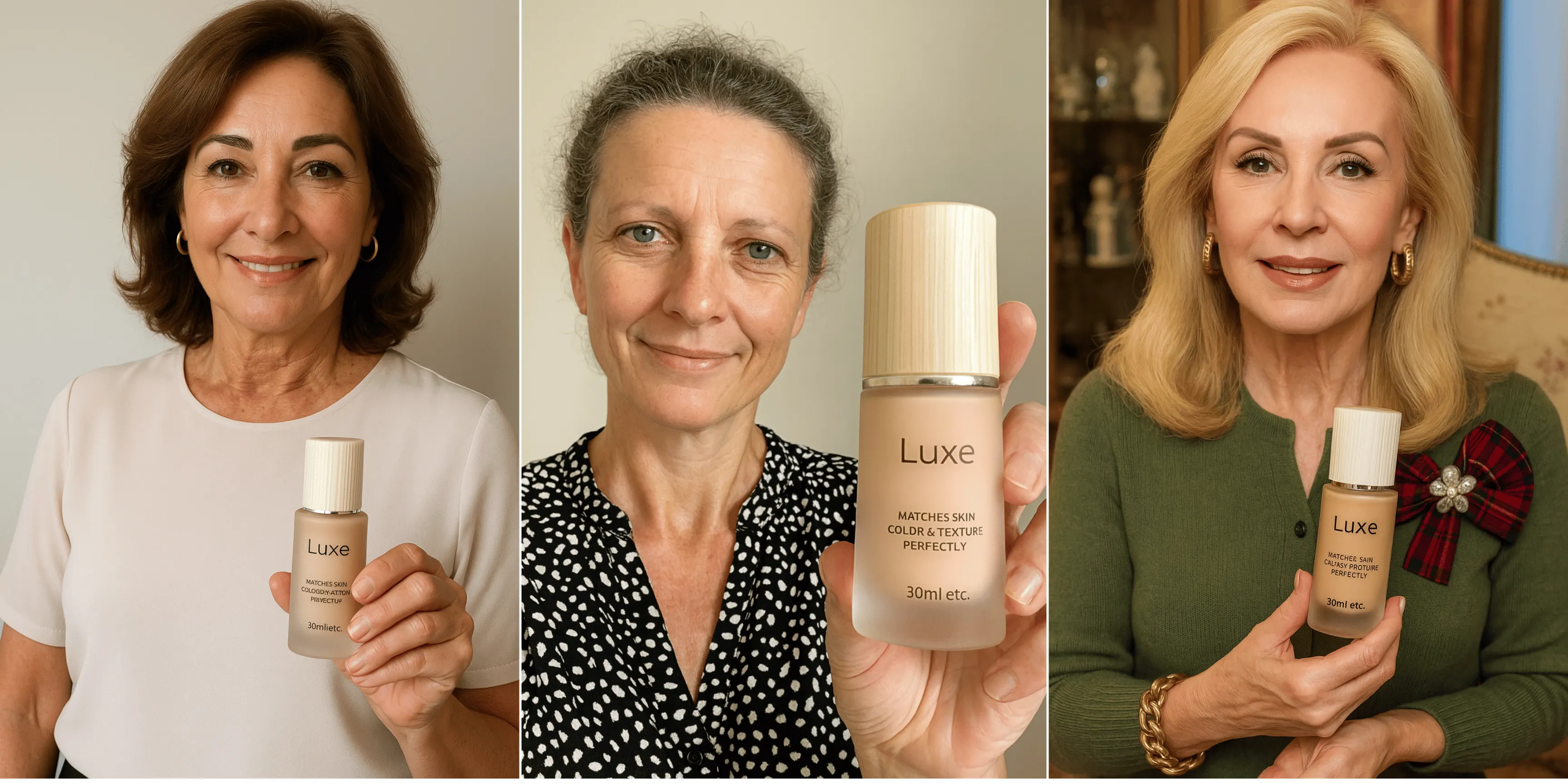 After menopause, my skin became impossible to match. I’d try a foundation in the morning and it would look completely different by lunch — gray, or orange, or just off. I spent probably $400 last year alone on foundations sitting in my drawer. This one actually adjusts as my skin changes throughout the day. For the first time in years, I’m not avoiding photos. My daughter borrowed it and immediately said, ‘Mom, where have you been hiding this?’ The SPF is a bonus — one less step in my routine.